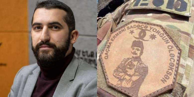 «Կից ադրբեջանական սոցիալական ցանցերում պտտվող նկար է, որում պատկերված է զինվորական համազգեստի թևանկար (patch), որում էլ երևում է ժամանակակից Ադրբեջան պետության հիմնադիր, հայոց ցեղասպանության կազմակերպիչ Էնվար փաշան և «Մի՛ փախիր, հա՛յ, միայն հոգնած ես մեռնելու» գրությունը։