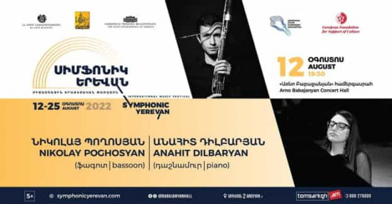 Օգոստոսի 12-ին` 19:30-ին «Առնո Բաբաջանյան» համերգասրահում տեղի կունենա «Սիմֆոնիկ Երևան» միջազգային երաժշտական փառատոնի բացման համերգը: Ելույթ կունենան ֆագոտահար Նիկոլայ Պողոսյանը և դաշնակահար Անահիտ Դիլբարյանը։