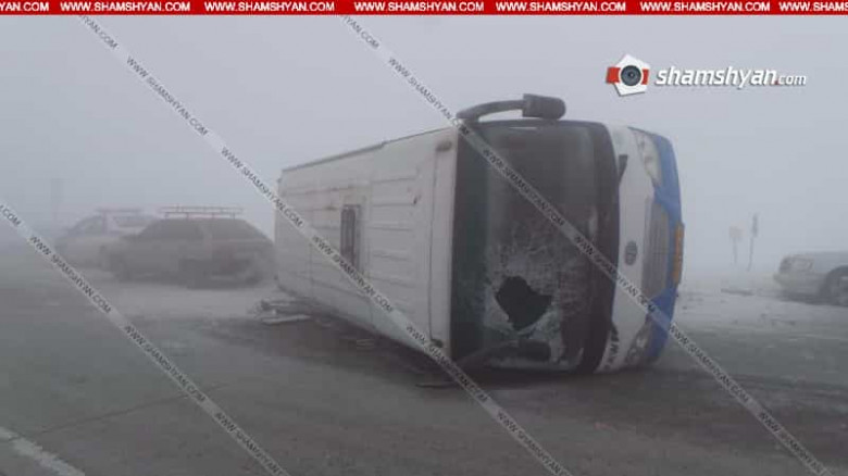 Խոշոր ավտովթար Արարատի մարզում. մարդատար ավտոբուսը բախվել է բետոնե արգելապատնեշներին և կողաշրջվել. կա 7 վիրավոր. ՖՈՏՈՌԵՊՈՐՏԱԺ