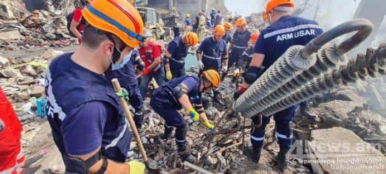Դեպքի վայրում աշխատում են ԱԻՆ ՓԾ Երեւան քաղաքի փրկարարական վարչության 171 հրշեջ-փրկարար, 6 հրշեջ եւ 1 փրկարարական տեխնիկա, 2 ավտոսանդուղք, Ճգնաժամային կառավարման ազգային կենտրոնի օպերատիվ, Փրկարարական ուժերի վարչության հատուկ նշանակության փրկարարական աշխատանքների իրականացման կենտրոնի փրկարարական, ԱԹՍ մասնագիտացված եւ կինոլոգիական, Բժշկական ապահովման վարչության, Հրդեհաշիջման եւ փրկարարական աշխատանքների կազմակերպման բաժնի հերթապահ խմբերը, Հոգեբանական աջակցության բաժնի հերթապահ հոգեբանը, գազածխապաշտպան ծառայության ավտոմեքենան, Շիրակի եւ Տավուշի քաղաքային որոնողափրկարարական թիմերը (համապատասխանաբար` 44 եւ 40 փրկարարներով), Ռուս-հայկական կենտրոնից՝ 2 փրկարար եւ 1 հրշեջ տեխնիկա, 30 կամավոր «ՈՄԱ» ռազմահայրենասիրական հասարակական կազմակերպությունից եւ 102 կամավոր՝ «Կարմիր Խաչ» մարդասիրական կազմակերպությունից։