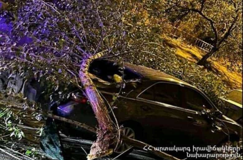 Երևանում ծառն ընկել է ավտոմեքենայի վրա