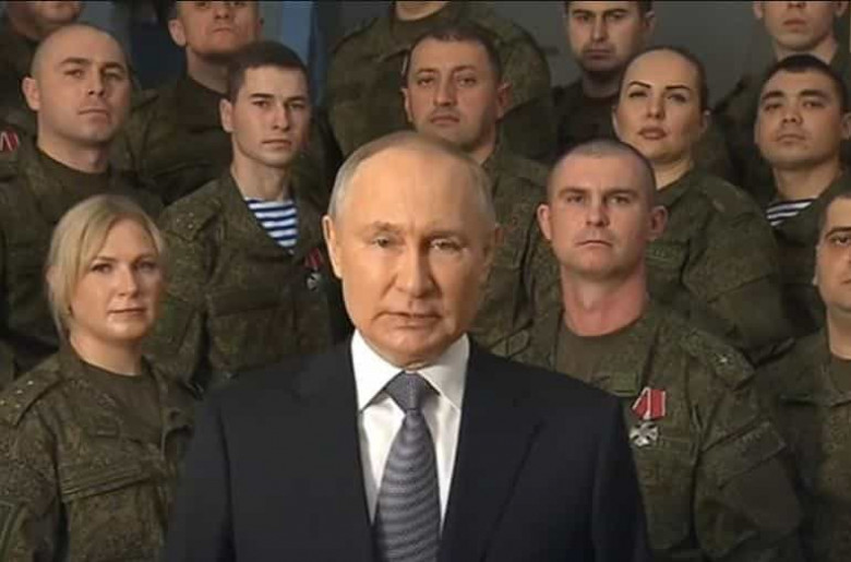 Պուտինն Ամանորը շնորհավորել է հատուկ գործողությանը մասնակցող զինծառայողներով շրջապատված