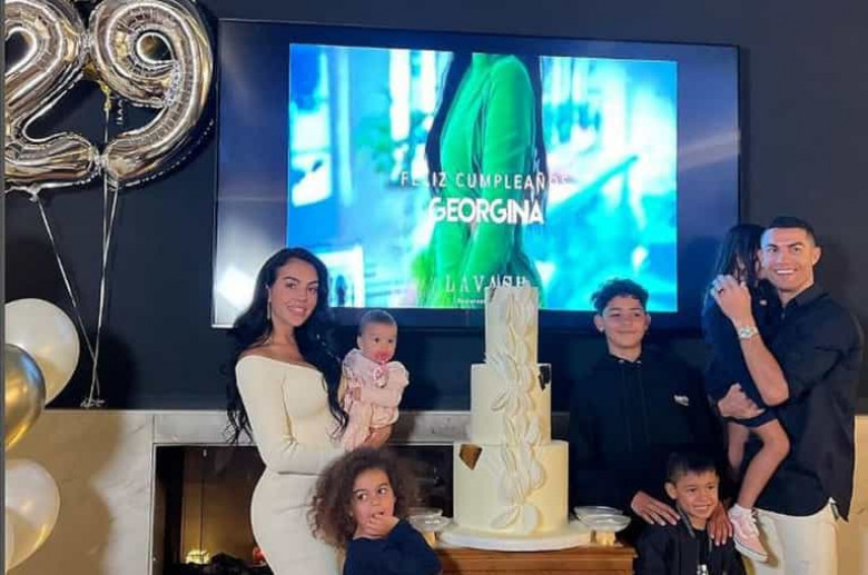 Ինստագրամի իր էջում Ջորջինան լուսանկար է հրապարակել, որում կ սիրելիի և երեխաների հետ՝ եռահարկ տորթի ֆոնին։