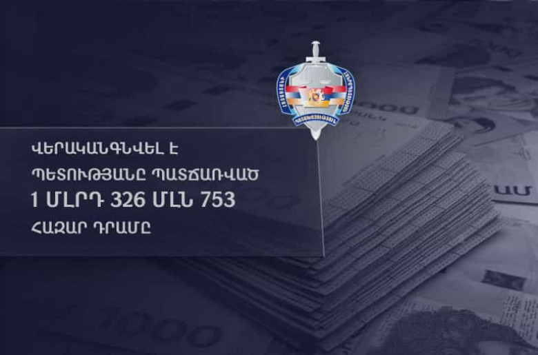 Վերականգնվել է պետությանը պատճառված 1 մլրդ 326 մլն 753 հազար դրամը