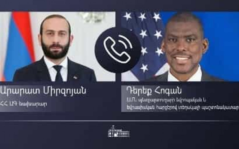 Մայիսի 13-ին ՀՀ ԱԳ նախարար Արարատ Միրզոյանը հեռախոսազրույց է ունեցել ԱՄՆ պետքարտուղարի եվրոպական և եվրասիական հարցերով տեղակալի պաշտոնակատար Դերեք Հոգանի հետ: Այս մասին հայտնում են ՀՀ ԱԳՆ-ից: