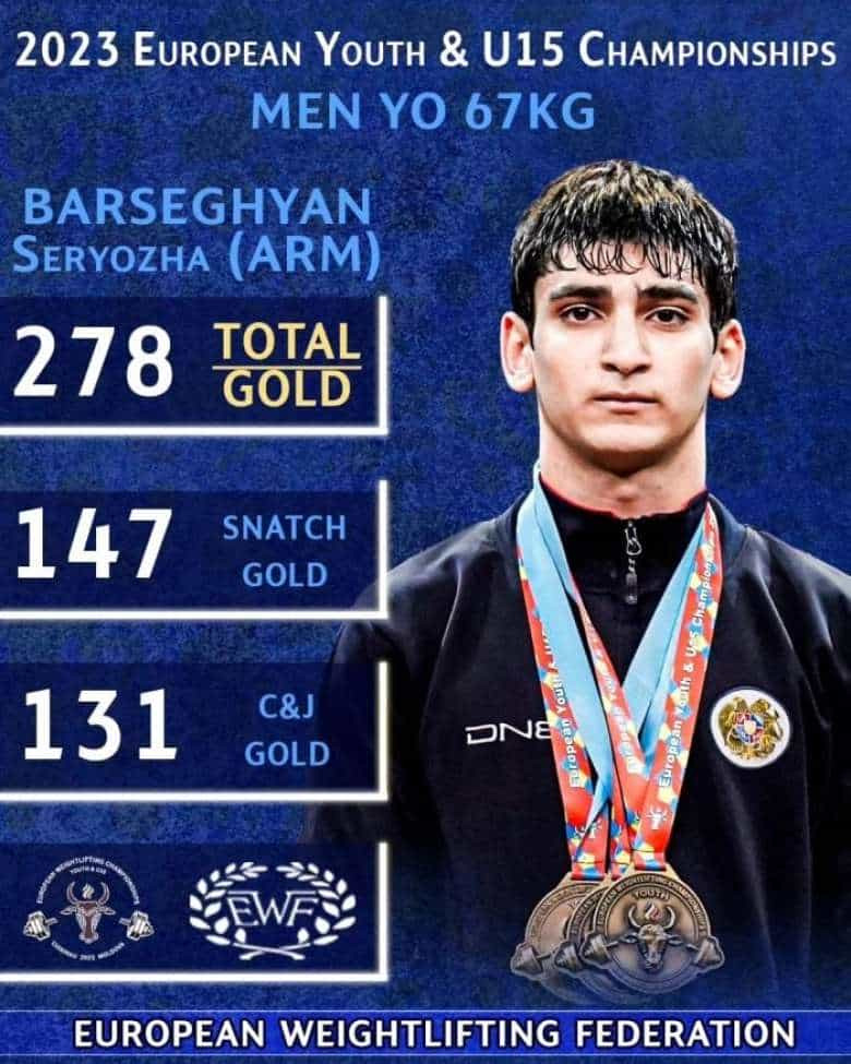 Հայաստանի ներկայացուցիչ Սերյոժա Բարսեղյանը նվաճեց Մոլդովայի մայրաքաղաք Քիշնևում անցկացվող ծանրամարտի Եվրոպայի մինչեւ 17 տարեկանների առաջնության երկամարտի ոսկե մեդալը 67 կգ քաշային կարգում՝ ցույց տալով 278 կգ (131+147) արդյունք։ Նա առաջինն էր նաեւ պոկում և հրում վարժություններում: