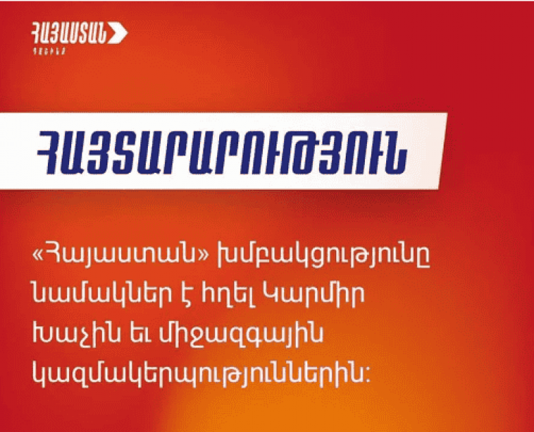 «Հայաստան» խմբակցությունը նաև հորդորում է Կարմիր Խաչի միջազգային կոմիտեին բազմապատկել իր ջանքերը՝ կանխելու Լեռնային Ղարաբաղում հումանիտար իրավիճակի հետագա վատթարացումը և տարածաշրջանում մարդասիրական իրավունքի ոտնահարման դեպքերը»: