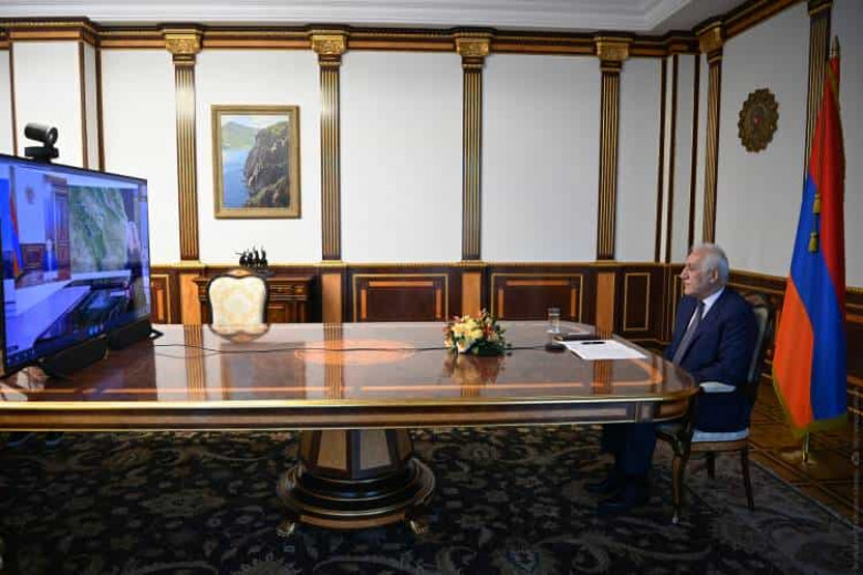 Նախագահն անդրադարձել է նաև վերջին ամիսներին Լեռնային Ղարաբաղի շուրջ ստեղծված իրավիճակի հանգուցալուծման նպատակով միջազգային տարբեր կառույցների նախաձեռնություններին և նշել, որ չնայած գնահատելի են մասնավորապես Ֆրանսիայի և տարբեր հեղինակավոր կառույցների ջանքերը խնդրի խաղաղ ճանապարհով լուծման և ելքեր գտնելու ուղղությամբ, այնուամենայնիվ դրանք բավարար չեն եղել ինչպես Լաչինի հումանիտար միջանցքն ապաշրջափակելու, այնպես էլ Ադրբեջանին զսպելու և ուժի կիրառումը բացառելու համար:
