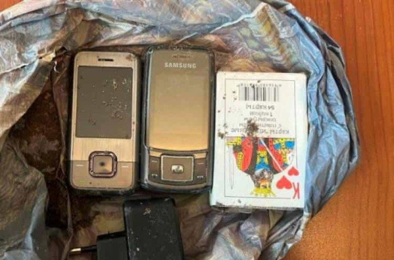 Արդյունքում՝ սալիկի տակ պատրաստված թաքստոցից հայտնաբերել են պոլիէթիլենային տոպրակ, որում առկա են եղել 52 հատ գործարանային արտադրության խաղաթուղթ, 2 բջջային հեռախոս և 1 լիցքավորիչ։