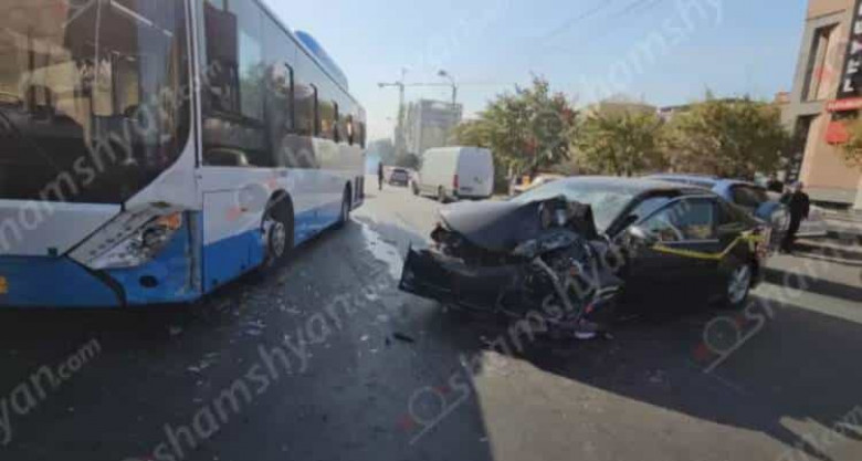 Խոշոր ավտովթար՝ Երևանում. բախվել են Toyota-ն և ավտոբուսը. վիրավորներ կան