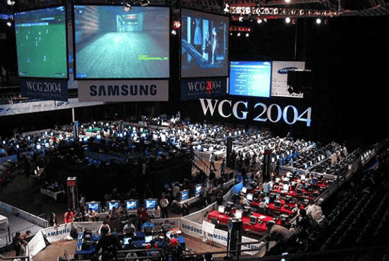 Առաջին անգամ 20-րդ դարի 70-ական թվականներին են Սթենֆորդի համալսարանում անցկացվել են Spacewar համակարգչային խաղի առաջին մրցումները։ Այդ միջոցառումը տեղի է ունեցել համալսարանի համակարգչային լաբորատորիաներից մեկում, որտեղ առաջին մասնակիցներին ու հանդիսատեսին գայթակղել են անվճար գարեջրով։ 1980 թվականին ԱՄՆ-ից մոտ տասը հազար գեյմերներ են մասնակցել այդ Space Invaders առաջնությանը։