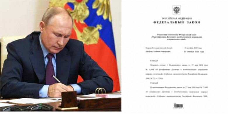Ռուսաստանի նախագահ Վլադիմիր Պուտինը օրենք է ստորագրել, ըստ որի Ռուսաստանը հետ է կանչում Միջուկային համապարփակ համաձայնագրի (CTBT) վավերացումը։ Փաստաթուղթը հրապարակվել է իրավական տեղեկատվության պաշտոնական պորտալում։