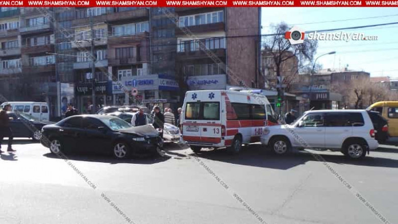 Շղթայական ավտովթար Երևանում. բախվել են Mitsubishi Pajero-ն, Mazda-ն և շտապօգնության ավտոմեքենան. ՖՈՏՈՌԵՊՈՐՏԱԺ