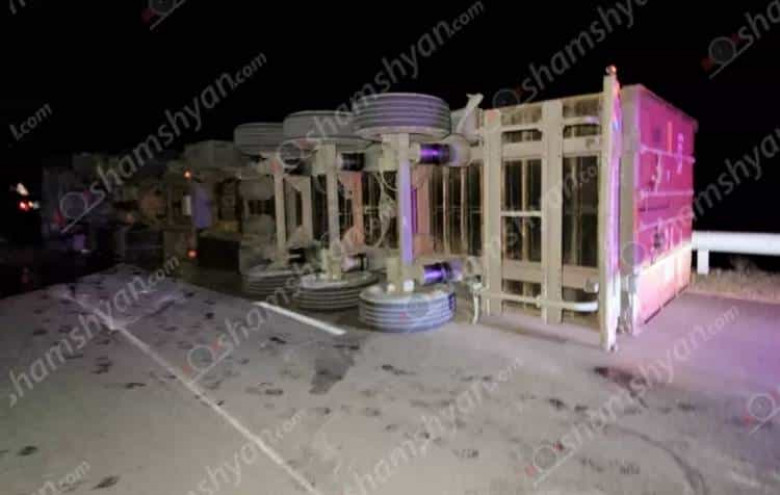 Խոշոր վթար՝ Արարատում․ Տիգրանաշենի ոլորաններում Foton մակնիշի բեռնատարը կողաշրջվել է