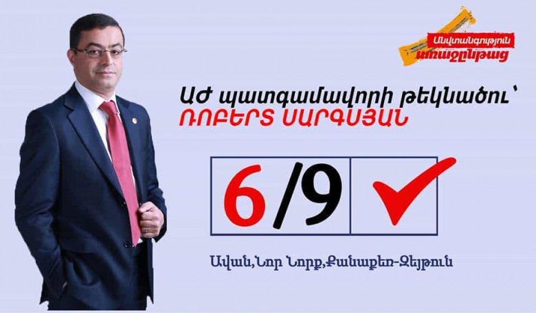 Ապրիլի 2-ին, կատարելով ձեր ընտրությունը, որոշում եք ում եք ցանկանում տեսնել Ազգային ժողովում որպես ձեր ներկայացուցիչ. Ռոբերտ Սարգսյան