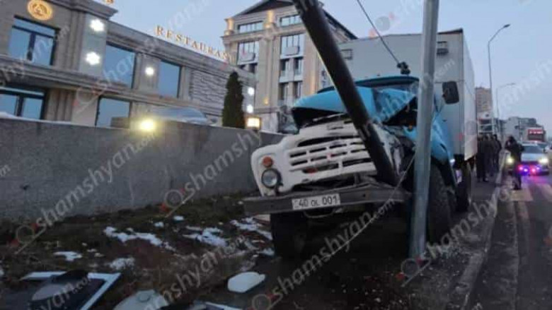 Արտակարգ դեպք՝ Երևանում․ ЗИЛ-ը բախվել է էլեկտրասյանը և կոտրել հետիոտնային անցման լուսացույցը