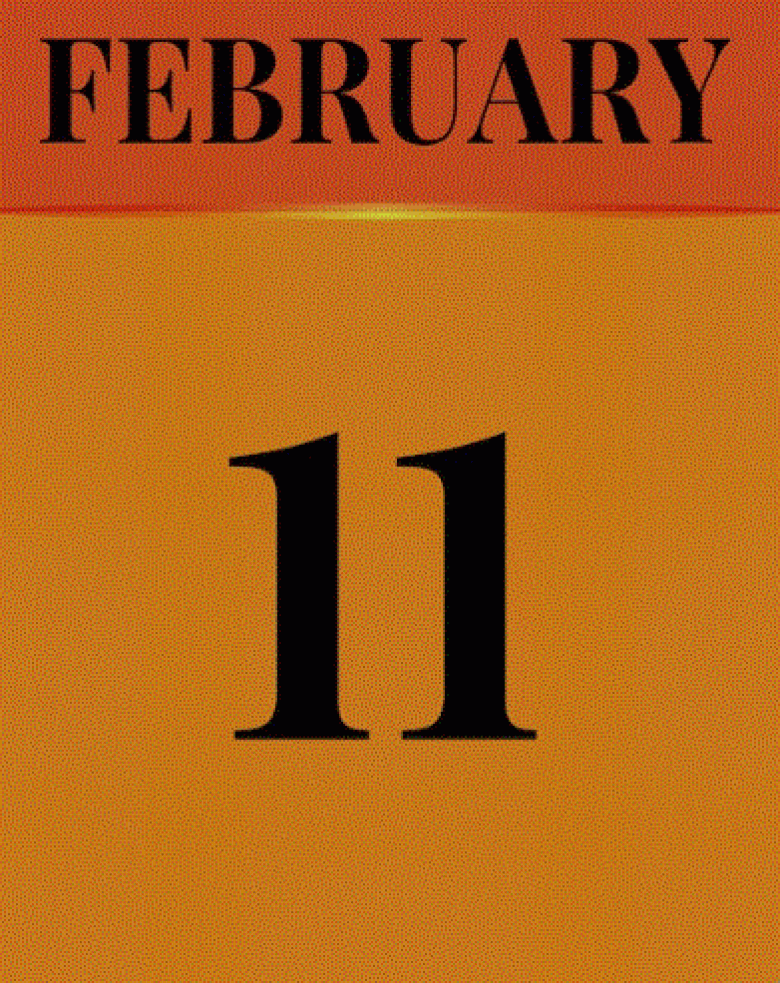ՈՐՈՇ ՏՈՆԵՐ-Հիվանդների համաշխարհային օր, Գիտության մեջ աշխատող կանանց և աղջիկների միջազգային օր, Իրան՝ Իսլամական հեղափոխության հաղթանակի օր, Լեհաստան՝ Անտառի գազաններին կերակրելու օր, Ճապոնիա՝ Պետության հիմնադրման օր, Ադրբեջան՝ Հարկային ծառայողի օր, Կամերուն՝ Երիտասարդության օր, Լիբերիա՝ Զինված ուժերի օր, ֆիլիպիններ՝ Էվելո Ջավերի օր։