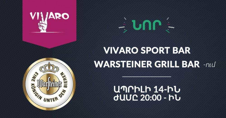 Եվ ահա ապրիլի 14-ին, Երևանի կենտրոնում՝ Թումանյան1 13\1 հասցեում գտնվող Warsteiner GRILL BAR-ում, ժամը 20։00-ին կբացվի ևս մեկ հարմարավետ և հաճելի վայր հատուկ նրանց համար, ովքեր գնահատում են սպորտը  և հաճելի ժամանցը։