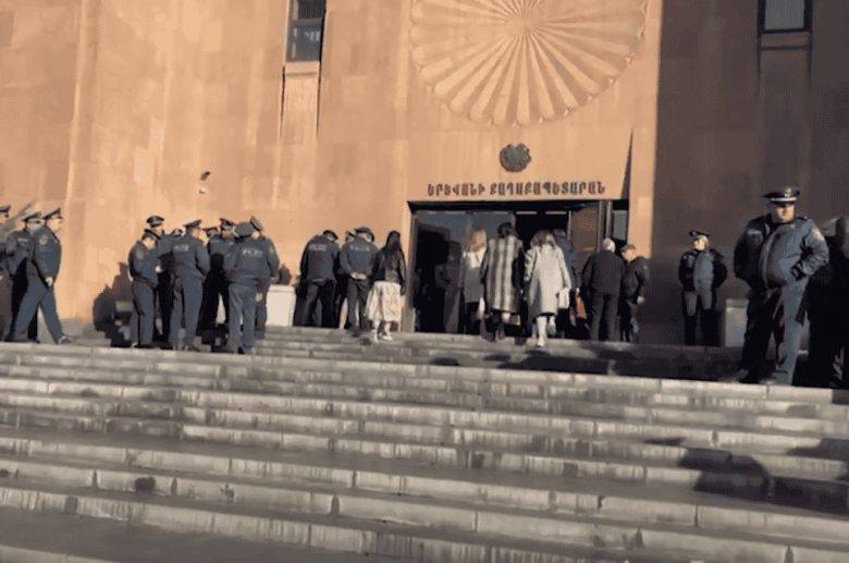 Նիստից առաջ մեծ թվով ոստիկանական ուժեր են բերվել Երևանի քաղաքապետարանի շենքի մոտ: Քաղաքացիները տրանսպորտի թանկացման դեմ ակցիա են անում։