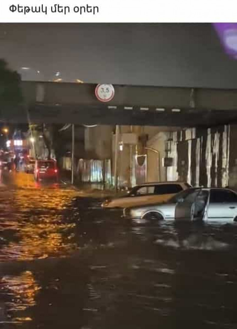 Նախօրեին Երեւանումտեղացած հորդառատ անձրեւը ջրհեղեղ է առաջացրել, նույնիսկ ավտոմեքենաներ են մնացել ջրի տակ:
