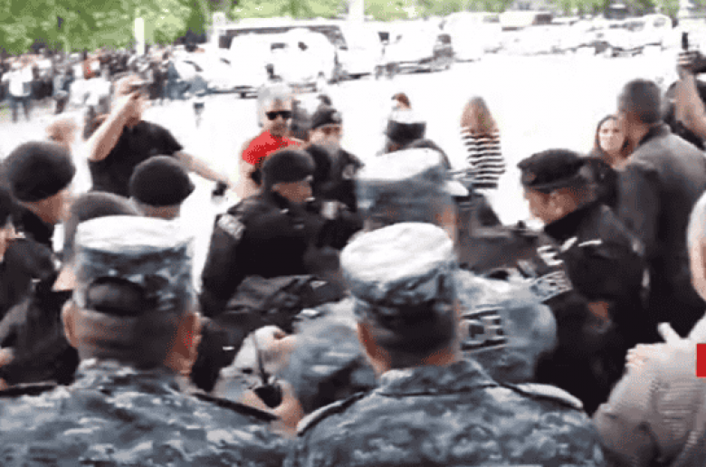 ՀԱՍԱՐԱԿՈՒԹՅՈՒՆՕպերայի հարակից տարածքում ոստիկանների և ցուցարարների միջև բախում տեղի ունեցավ։ Ըստ ականատեսների՝ պատճառը եղել է այն, որ սևբերետավորները ոտքով հարվածել են քաղաքացուն, հայհոյել։