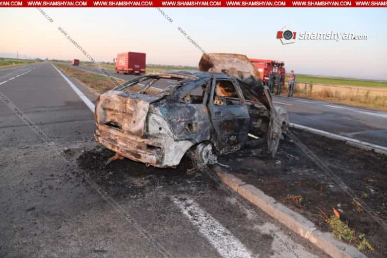 Ինչպես դեպքի վայրից հայտնում է ֆոտոլրագրող Գագիկ Շամշյանը, բախման հետևանքով ավտոմեքենաներից մեկում հրդեհ է բռնկվել և այն վերածվել է մոխրակույտի: Իսկ մյուս ավտոմեքենան դուրս է եկել ճանապարհի երթևեկելի գոտուց և հայտնվել դաշտամիջում: