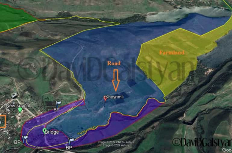 «Սա Կիրանց գյուղն է, որի տարածքները անցյալ շաբաթ Հայաստանի դե-ֆակտո կառավարիչը հանձնեց Ադրբեջանին: Հանձնված տարածքները նշված են կապույտով և մանուշակագույնով (քարտեզը պատրաստել է լրագրող Դավիթ Գալստյանը):