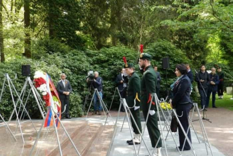 Դիվանագիտական առաքելությունների ղեկավարների, այդ թվում ՝ ՀՀ դեսպան Ձյունիկ Աղաջանյանի և քաղաքային իշխանությունների կողմից ծաղկեպսակներ զետեղվեցին «Ռուստհոֆ» հուշահամալիրում` խորհրդային զինվորների փառքի հուշարձանին, և ծաղկեզամբյուղներ՝ Դաշնակից զորքերի օդաչուների հուշարձանին: