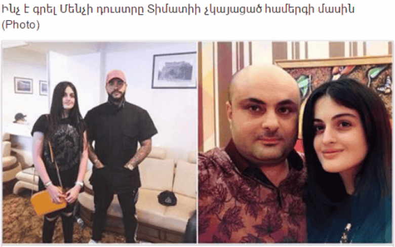 Ինչ է գրել Մենչի դուստրը Տիմատիի չկայացած համերգի մասին (ֆոտո)