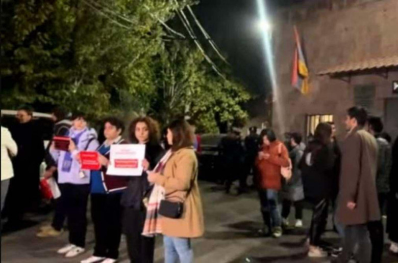 Սրբազան Պայքարի աջակիցներն Էրեբունու ՁՊՎ-ի առջև հավաք են իրականացնում՝ աջակցելու ձերբակալված 9 քաղաքացուն։