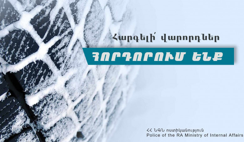 «Բոլորիս անվտանգությունից ելնելով՝ հորդորում ենք երթևեկել բացառապես ձմեռային անվադողերով, խստորեն պահպանել ճանապարհային երթևեկության կանոնները: Բացի դրանից՝ հիշեցնենք նաև, որ ուժի մեջ է մտել օրենսդրական կարգավորումը, ըստ որի՝ ձմեռային անվադողերով երթևեկելը մարտի 31-ը ներառյալ պարտադիր է։ Մաղթում ենք անվտանգ երթևեկություն»,- հայտնում են ՆԳՆ-ից։