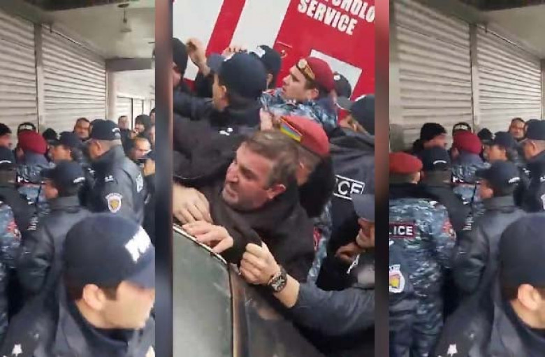 Ինչ-որ պահի քաշքշոց սկսվեց ոստիկանների եւ մսավաճառների միջեւ: Մսավաճառներից մեկը հանել էր կրակայրիչը եւ ուզում էր վառել իրեն: Քաշքշոցի ժամանակ մսավաճառներից մեկի ինքնազգացողությունը վատացավ: Ոստիկանները բերման ենթարկեցին 7 հոգու եւ ինքնահրկիզման փորձ կատարողին՝ խուլիգանության կասկածանքով: