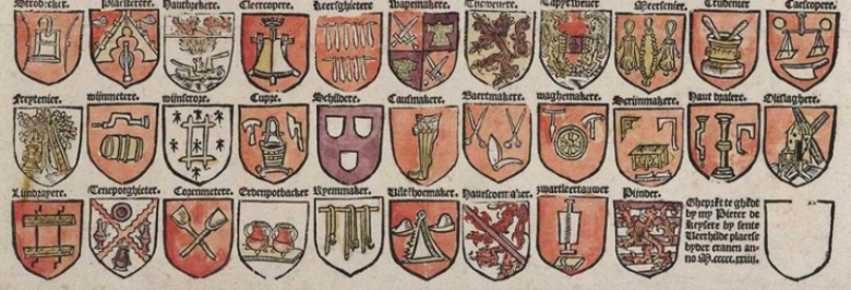 Արհեստավորներն ունեին իրենց տարբերակիչ նշանը, այսպես ասած որակի նշանը։ Եվ դրանք գրեթե զինանշաններ էին։ Մնում էր հարցը լուծել օրենքով, որը, սակայն, արգելում էր հասարակ մարդկանց զինանշաններ ստեղծել։ Արդյունքում արհեստանոցների և գիլդիաների առաջին զինանշաններն անօրինական էին և գոյություն ունեին, քանի որ դրանց տերերն առատաձեռնորեն կաշառքներ էին տալիս։ Պետությունը չցանկանալով այդ ամենին կողքից նայել կաշառքը փոխարինվեց «սխալ» զինանշանի համար պաշտոնական վճարմամբ, իսկ հետո հայտնվեց զինանշանների հարկը։ Եվ հետո էլ որոշվեց, որ գիլդիաներն ու համայնքները վարձավճարով կարող են ձեռք բերել սեփական զինանշան ստեղծելու իրավունք։ Իսկ որոշ դեպքերում պաշտոնյաները նույնիսկ սկսեցին ստիպել տարբեր գիլդիաների ներկայացուցիչներին զինանշան ձեռք բերել։