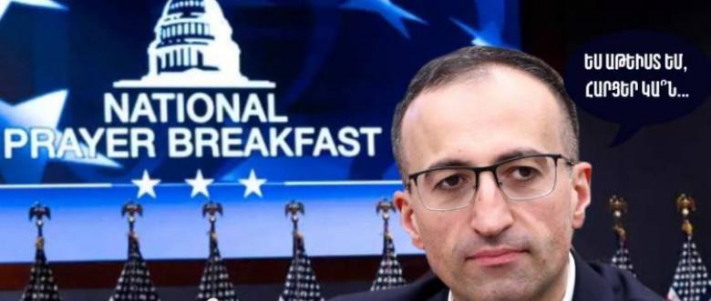 Հարցական է, թե այդ որ արժանիքի համար է աթեիստ Արսեն Թորոսյանը հասել ԱՄՆ՝ կրոնական միջոցառման մասնակցելու։ Սա ծաղրանք է հավատացյալների՞, ԱՄՆ-ի՞, թե՞ ինքն իր նկատմամբ: