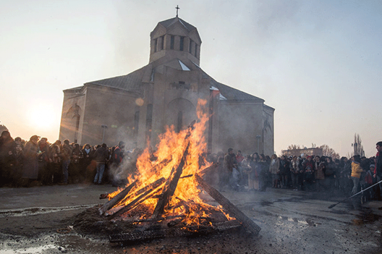 Հայաստանյայց Առաքելական Սուրբ Եկեղեցին Տեառնընդառաջը կամ 40-օրական Հիսուսի ընծայումը տաճարին տոնում է Աստվածահայտնությունից 40 օր հետո` փետրվարի 14-ին: Հայ Եկեղեցու կանոնի համաձայն, տոնի նախօրեին, երեկոյան ժամերգությունից հետո կատարվում է նախատոնակ: Այն ավետում է Տերունի տոնի սկիզբը: Նախատոնակի արարողության ավարտին կատարվում է Անդաստանի արարողություն, որի ընթացքում օրհնվում են աշխարհի չորս ծագերը: Եկեղեցու կանթեղներից վերցված կրակով վառվում են խարույկներ՝ իբրև Քրիստոսի լույսի խորհրդանիշ: