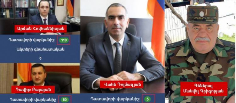Եվ ահա, ուսումնասիրելով նախկին դատախազ, 08.08.2022 թվականից ՀՀ Հակակոռուպցիոն դատարանի դատավորի պաշտոնին նշանակված Վահե Դոլմազյանին տրված գնահատականը, արձանագրեցինք, որ ամենացածր վարկանիշն ունեցողներից է՝ ընդամենը 5: Համեմատության համար նշենք, որ ամենաբարձր ցուցանիշն ունի Երեւան քաղաքի ընդհանուր իրավասության դատարանի դատավոր Արման Հովհաննիսյանը՝ 119 վարկանիշով, կամ, դարձյալ որպես համեմատություն նշենք, բարձր վարկանիշ ունի Երեւան քաղաքի ընդհանուր իրավասության դատարանի դատավոր Դավիթ Բալայանը՝ 80: