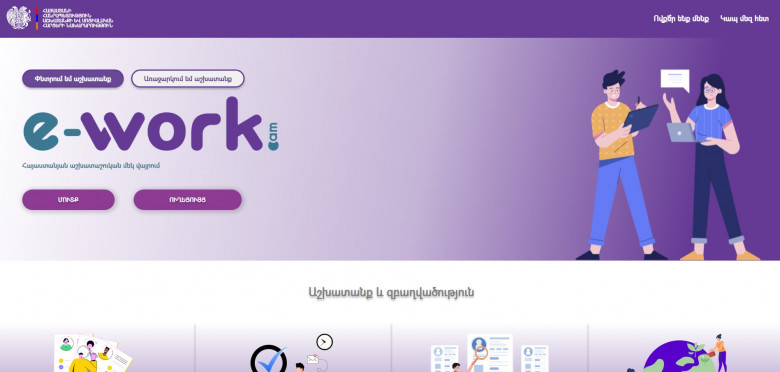 Աշխատանքի և սոցիալական հարցերի նախարարությունն առաջարկում է փոփոխություն և լրացում կատարել կառավարության 2014 թ. ապրիլի 17-ի N 534-Ն որոշման մեջ: Նախագծով հնարավորություն է տրվում աշխատանք փնտրող անձանց առցանց եղանակով՝ e-work հարթակի միջոցով հաշվառվելու և ստանալու ծառայություններ միասնական սոցիալական ծառայության տարածքային կենտրոնի կողմից, իսկ գործատուներին՝ առցանց եղանակով հարթակի միջոցով գրանցվելու, ինչը հնարավոր կդարձնի գործատուների համար կառավարության որոշմամբ սահմանված կարգով ներգրավվելու զբաղվածության պետական ծրագրերում և համալրելու իր մոտ առկա թափուր աշխատատեղը։ Հարթակը նպատակ ունի մեկտեղելու հայաստանյան աշխատաշուկան պետական հարթակում, կամուրջ ստեղծելու գործատուների և աշխատանք փնտրողների միջև, ինչպես նաև ամրապնդելու պետություն-գործատու-աշխատանք փնտրող կապը: