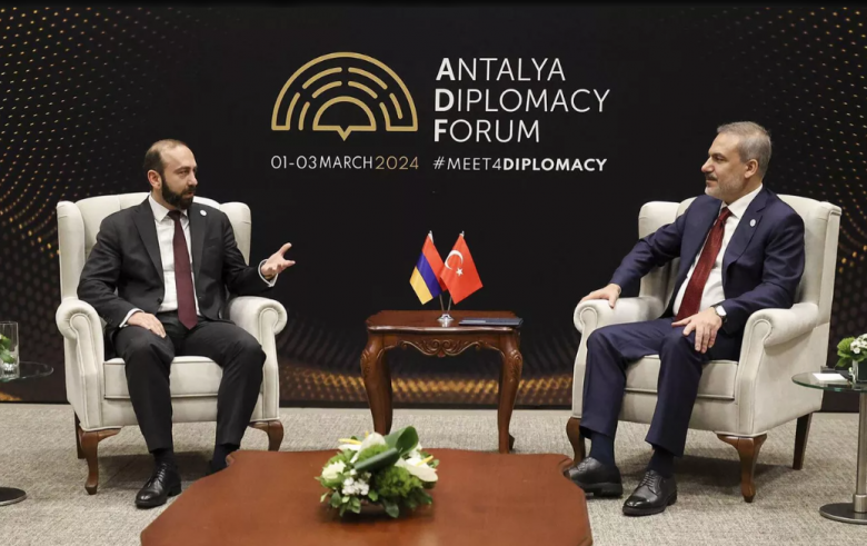 ՎԵՐԼՈՒԾՈՒԹՅՈՒՆՆԵՐՆախօրեին Անթալիայի դիվանագիտական համաժողովի շրջանակներում կայացել է Հայաստանի և Թուրքիայի արտգործնախարարների հանդիպումը, ըստ ՀՀ ԱԳՆ-ի, քննարկել են Հայաստան-Թուրքիա երկկողմ օրակարգի ընթացիկ հարցերը։ Միրզոյանն ու Ֆիդանը մտքեր են փոխանակել տարածաշրջանային և միջազգային զարգացումների շուրջ։ Հաղորդագրությունն այսքանով ավարտվում է։ Փակ հանդիպման և քննարկված այլ հարցերի վերաբերյալ ոչ Հայաստանի ԱԳՆ-ն, ոչ էլ Թուրքիայի համապատասխան գերատեսչությունն այլ մանրամասներ չեն ներկայացրել։