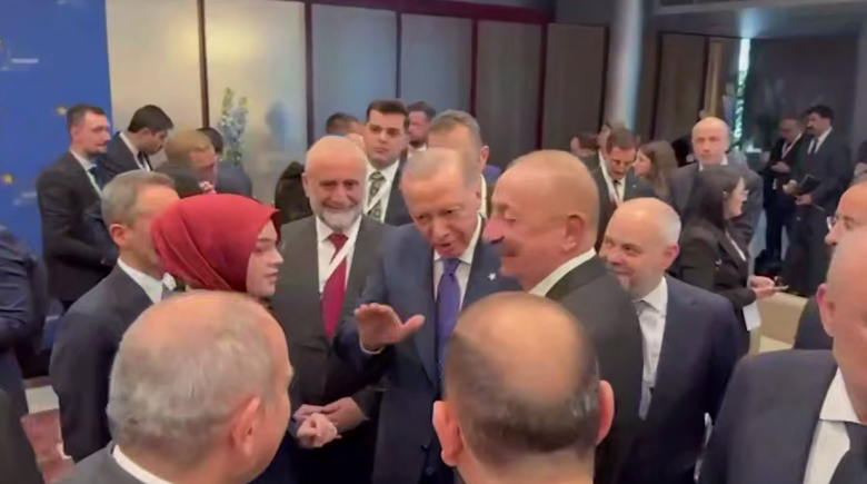 Տեսանյութում նաև երևում է, որ կարճ զրույցից հետո տեղի է ունեցել Էրդողան-Ալիև հանդիպում: