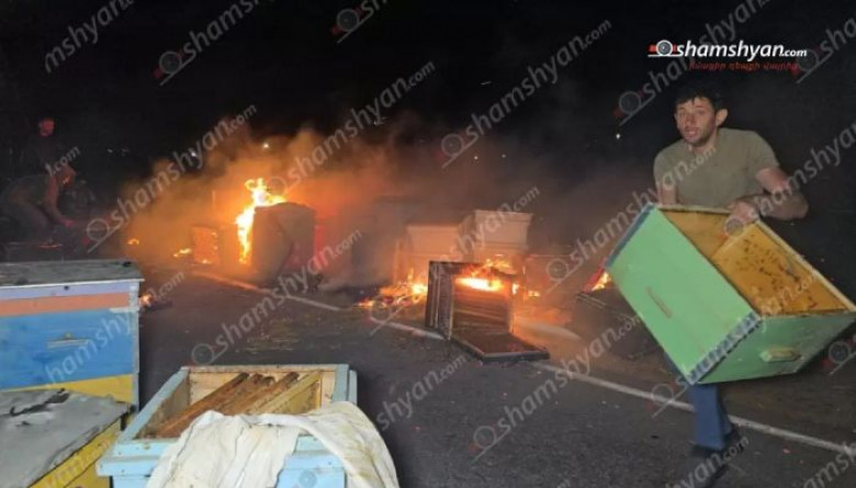 Արտակագ դեպք. հրդեհ է բռնկվել մոտ 30 մեղվի փեթակ տեղափոխող «KamAZ» բեռնատարի թափքում