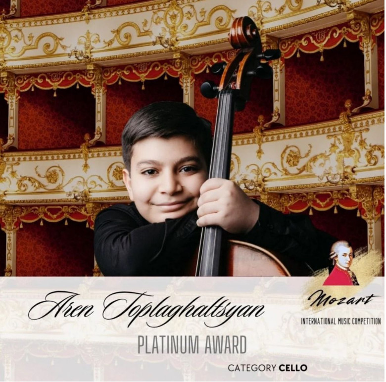 ​Եվ սա դեռ ամենը չէ։ Պատանի թավջութակահարը մասնակցել է «Mozart» միջազգային երաժշտական մրցույթին և արժանացել Պլատինե մրցանակի։ «Մոցարտ» միջազգային երաժշտական մրցույթը ևս ամենահանրաճանաչներից մեկն է համարվում։ Այն եզակի հարթակ է, որն առաջարկում է երաժիշտներին արժեքավոր հնարավորություն՝ ցույց տալու իրենց ստեղծագործականությունն ու երաժշտական ​​տաղանդը։