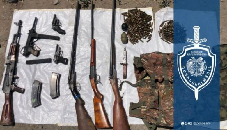 Նախաձեռնված քրեական վարույթի շրջանակում նշված վայրի զննությամբ հայտնաբերվել են «Կալաշնիկովի» ինքնաձիգ, «K6-92» տիպի ինքնաձիգ, գազային ատրճանակ, օդաճնշիչ ատրճանակ, երկփողանի որսորդական 2 հրացան, մեկփողանի որսորդական հրացան, նռնակներ, սվին-դանակ, տարբեր տրամաչափի 345 փամփուշտ, ինքնաձիգի դատարկ փամփշտատուփ, զրահաբաճկոն։