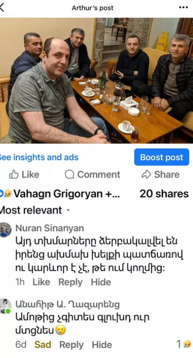 Սովորաբար նման անմակարդակ գրառումներն արվում են իշխանական ֆեյքերի, տարատեսակ ՊՈԱԿ-ներում բուծած կեղծ օգտատերերի կողմից, բայց երբեմն-երբեմն բարձրաստիճան պաշտոնյաները կամ նրանց ընտանիքի անդամներն էլ չեն կարողանում զսպել իրենց, հոգու աղբը դատարկում են սոցցանցերում։ Եվ սա ամենևին պարզ տգիտություն չէ, այլ ՀՀ իշխանությունների կողմից տարվող նպատակաուղղված հակաքարոզչություն արցախցիների նկատմամբ։