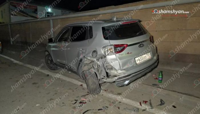 Ֆոտոլրագրողը հայտնում է, որ բախման հետևանքով «Chery Tiggo»-ն դուրս է եկել երթևեկելի գոտուց և հայտնվել մայթին: