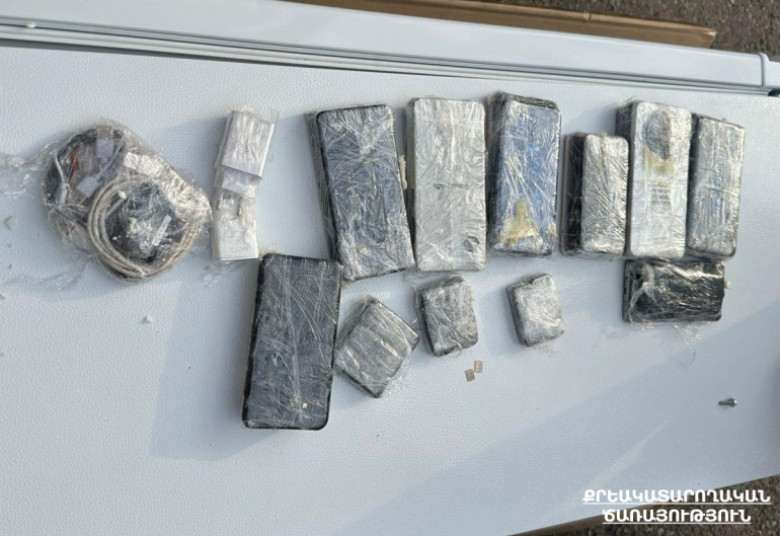 Խուզարկության արդյունքում սառնարանի ստորին հատվածում պատրաստված թաքստոցից հայտնաբերվել են 32 բջջային հեռախոս, 8 բաժանորդային քարտ, 7 լիցքավորման լար, 2 լիցքավորման սարք, անլար ականջակալ և բջջային հեռախոսի պահեստամաս։