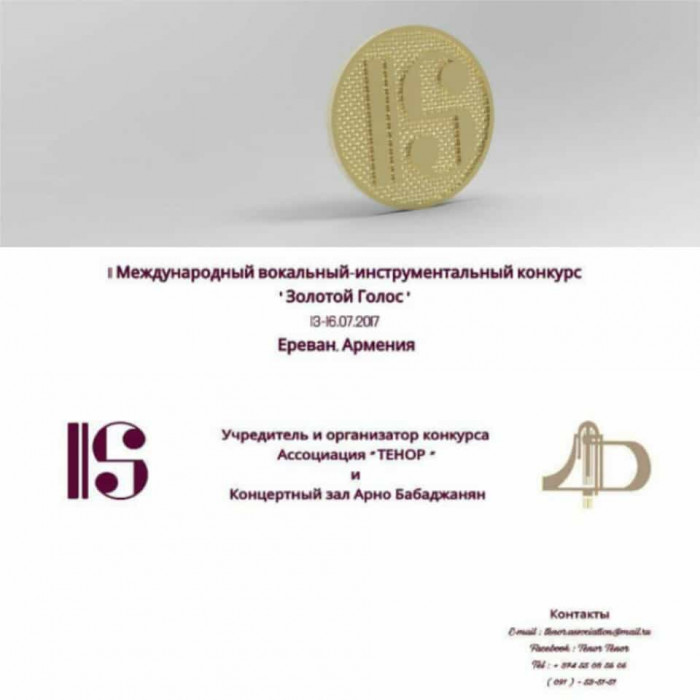Տեղեկացնենք, որ մրցույթը անցկացվելու է Առնո Բաբաջանյան համերգասրահում, այն կլինի երկու փուլով, իսկ գալա համերգին հաղթողները կպարգևատրվեն ոսկե կրծքանշաններով: