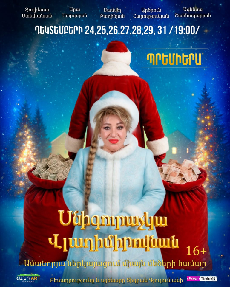 Ջուլիետա Ստեփանյանը խոստովանում է, որ իր նոր դերը ֆիզիկապես ու հոգեբանորեն բավական բարդ է: Ձմեռ Պապիկի դերը մարմնավորում է Արա Սարգսյանը, իսկ ներկայացման բեմադրիչն ու հեղինակը Տիգրան Գյուլումյանն է: Ներկայացման մեջ ընդգրկված են Արա Սարգսյանը, Սամվել Բաղինյանը, Արծրուն Հարությունյանը, Ագնեսա Շահնազարյանը: