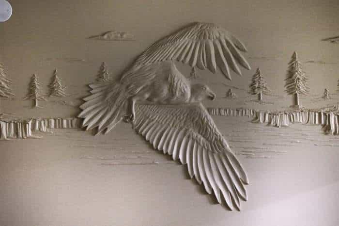 Դեռևս 1990-ականներից կանադացի Բեռնի Միթչելը վաստակում էր բնակարանների վերանորոգման աշխատանքներով: Մի անգամ Բեռնին փորձեց պատին հասցված գիպսի հաստ շերտից հարթաքանդակ ստեղծել: Արդյունքից որգևորված՝ նա սկսեց կատարելագործել իր ոճը. աստիճանաբար պատերին սկսեցին հայտնվել գիպսե գայլեր, ձիեր, բնանկարներ՝ գրում է novate.ru-ն: