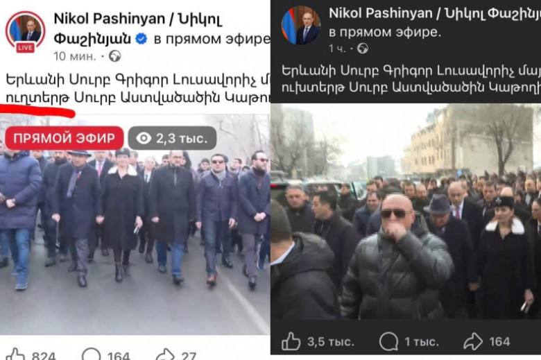 Ուշագրավ է, որ Փաշինյանի էջում երթը ներկայացվել է որպես «ուղտերթ», ապա րոպեներ անց ուղղել են։