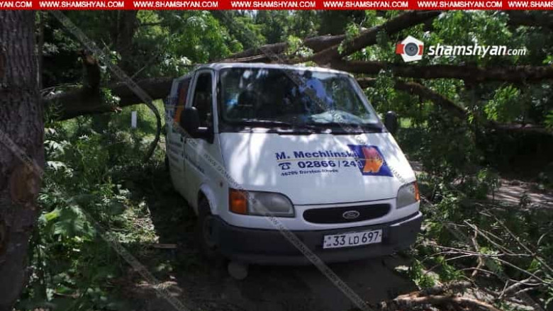 Արտակարգ դեպք Դիլիջանի ազգային պարկում. հաստաբուն ծառը պոկվել և ընկել է ընթացող Ford Transit-ի վրա